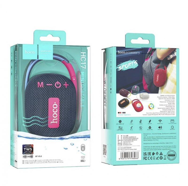 Portable wireless speaker. It allows you to connect a smartphone or any audio device equipped with the Bluetooth function. It has a built-in carabiner.